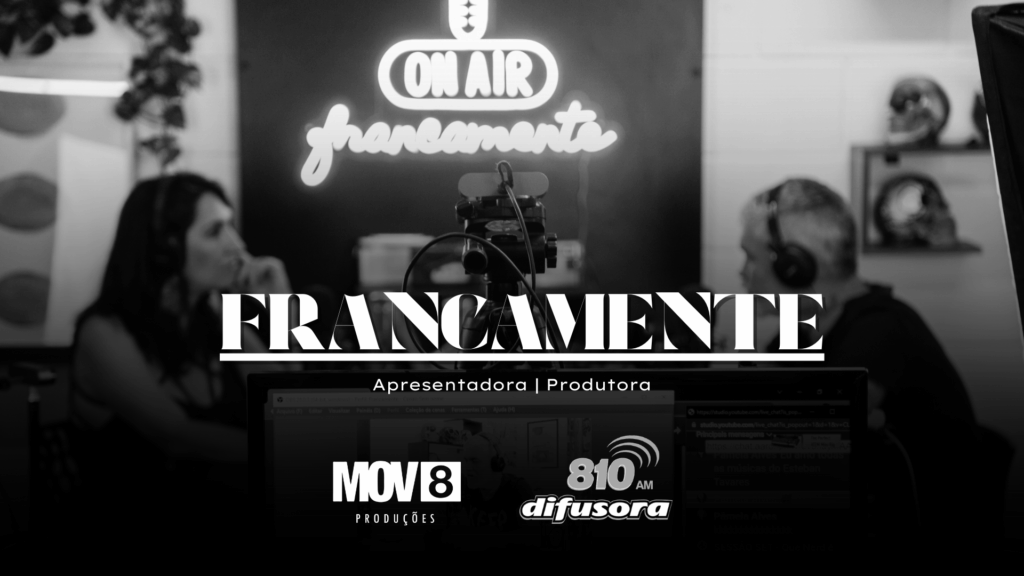 Apresentado por Tainan Franco, produtora cultural, comunicadora e diretora da Mov8 Produções, o Francamente vive agora uma nova fase, marcada pela expansão de formatos, fortalecimento institucional e ampliação de parcerias estratégicas. A trajetória de Tainan, somada à expertise da Mov8 em projetos culturais, políticas públicas e produção audiovisual, reforça o programa como plataforma de visibilidade, território de marca e oportunidade para investidores interessados em impacto cultural, comunicação qualificada e conexão direta com públicos diversos.